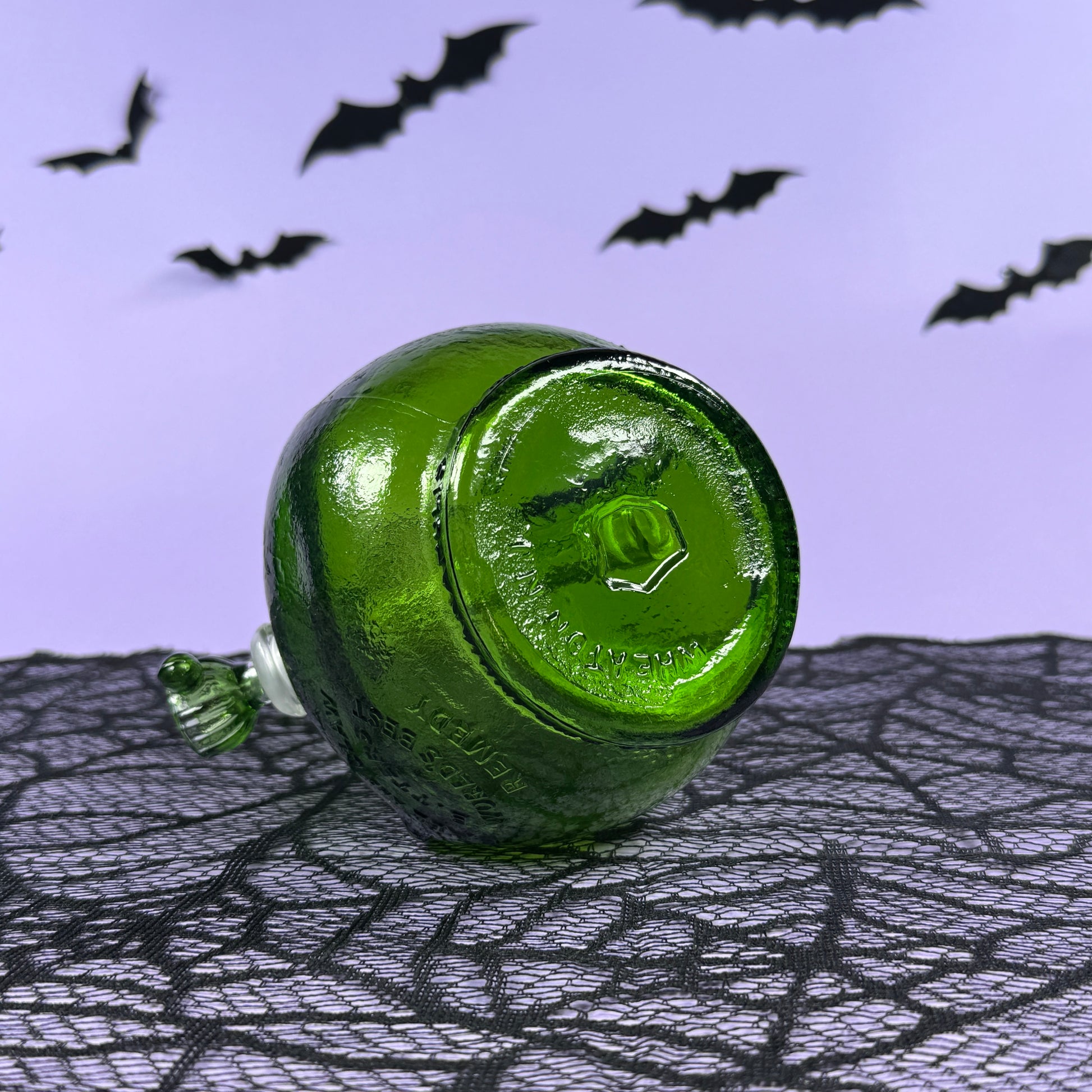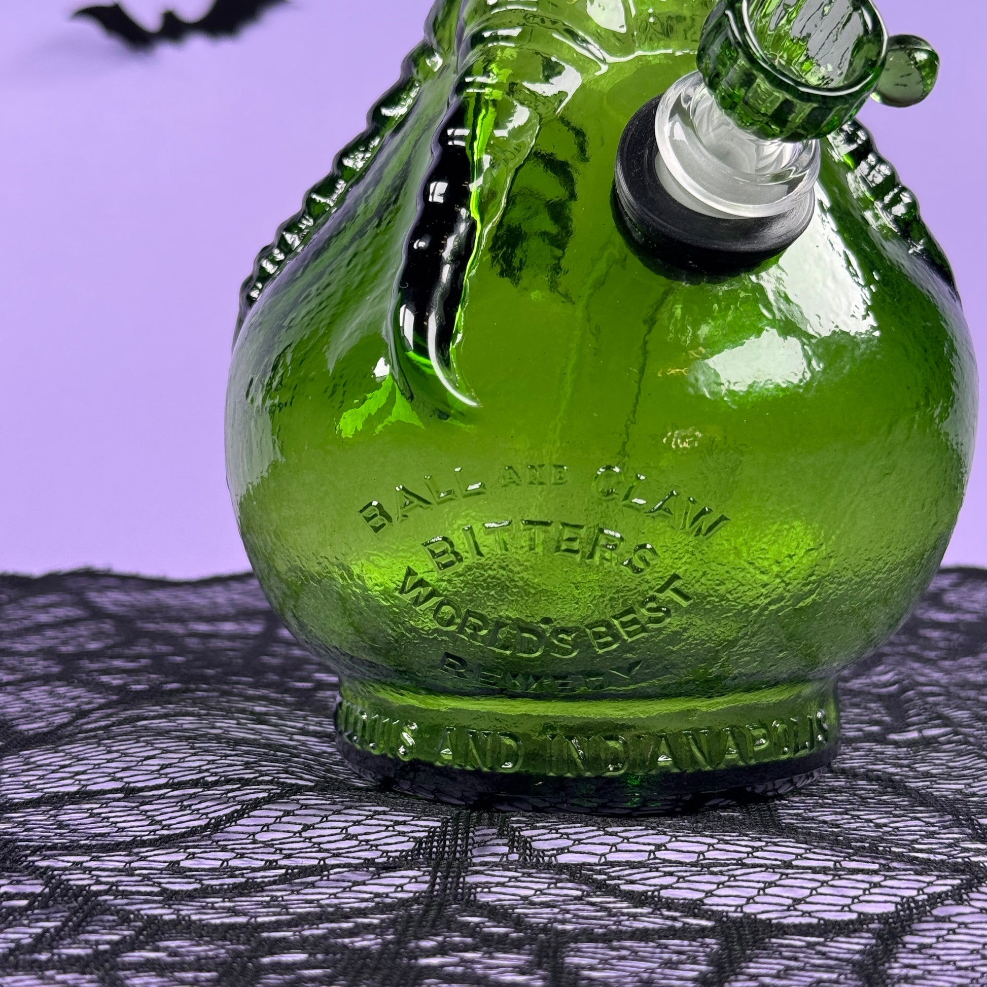 This green Ball & Claw bitters bottle is a true one-of-a-kind piece! Made of thick, quality glass. Bowl and custom bent stem included 💚